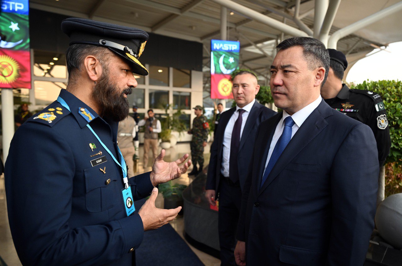 Президент Кыргызстана Садыр Жапаров в рамках государственного визита в Пакистан ознакомился с военной и научно-технической экспозицией Национального парка аэрокосмической науки и технологий (NASTP) в Исламабаде.