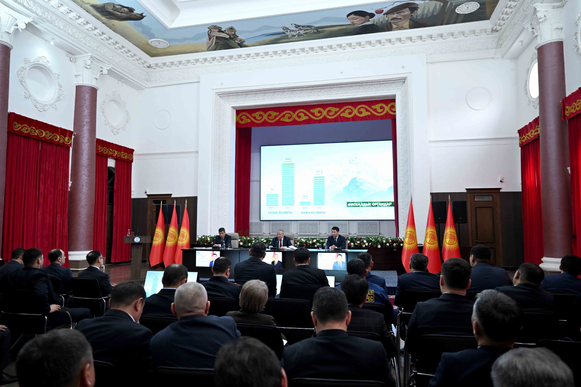 Адылбек Касымалиев отметил, что консолидированный бюджет страны за последние пять лет вырос в пять раз и превысил 1 триллион сомов. При этом Бишкек остается ключевым финансовым центром страны: из 304 миллиардов сомов, собранных Государственной налоговой службой, 198 миллиардов 7 миллионов сомов (около 65 процентов) приходится на столицу. Он также подчеркнул, что силовые и фискальные органы должны прекратить безосновательные проверки бизнеса.