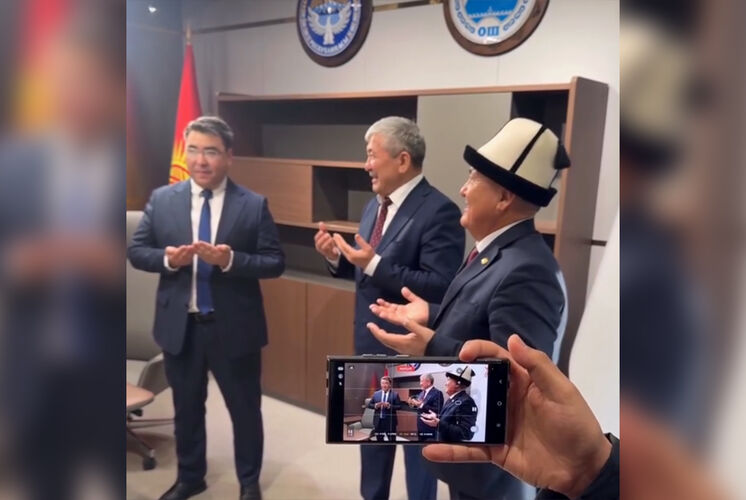 В социальных сетях распространяется видео, на котором председатель кабинета министров Адылбек Касымалиев сажает депутата Жогорку Кенеша Жанара Акаева в кресло мэра Оша. Рядом в кадре находится уже бывший градоначальник Женишбек Токторбаев.