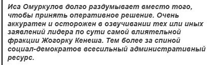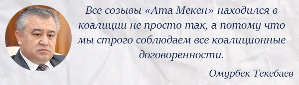 Вот, например, еще один «союзник» - фракция «Онугуу-Прогресс» - также решила показать, что не лыком шита. Это объединение, входящее также в коалицию, вслед за «Ата Мекеном» плюнуло на правила приличия и забыло, что все они там как бы единомышленники.