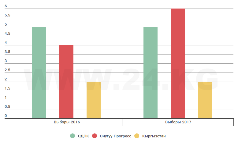 Кстати, на последних выборах партия Бакыта Торобаева забрала большинство голосов. В декабре 2016-го пальма первенства досталась социал-демократам. Члены «Онугуу-Прогресса» обвинили конкурентов в использовании административного ресурса.