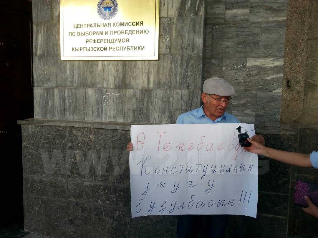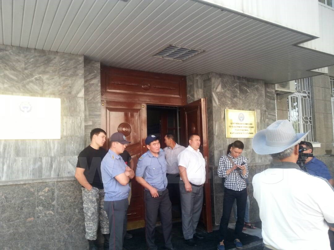У здания ЦИК собираются сторонники депутата парламента Омурбека Текебаева. Они требуют допустить его к сдаче экзамена по госязыку. Члены ЦИК должны были собраться на внеочередное заседание в 9.00. Однако нет кворума.