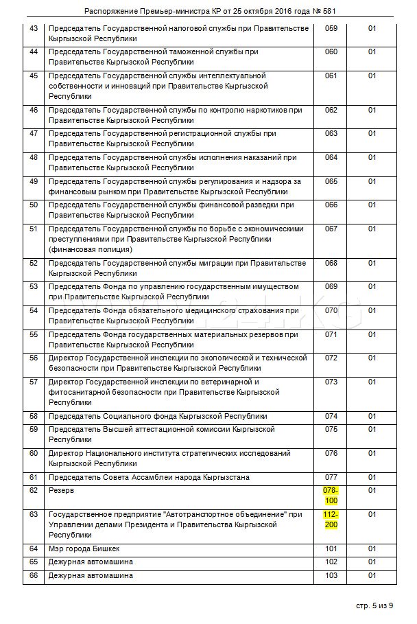 Увы, попрощаться со льготами на самом деле кабмин не торопится: 1 декабря на заседании ЖК депутат Акылбек Жамангулов заявил, что за правительством закреплены-таки госномера определенной серии — AC. Данную информацию ИА «24.kg» подтвердили и источникив ГРС, добавив, что их изготавливают по распоряжению премьер-министра Сооронбая Жээнбекова № 581 от 25 октября 2016 года.