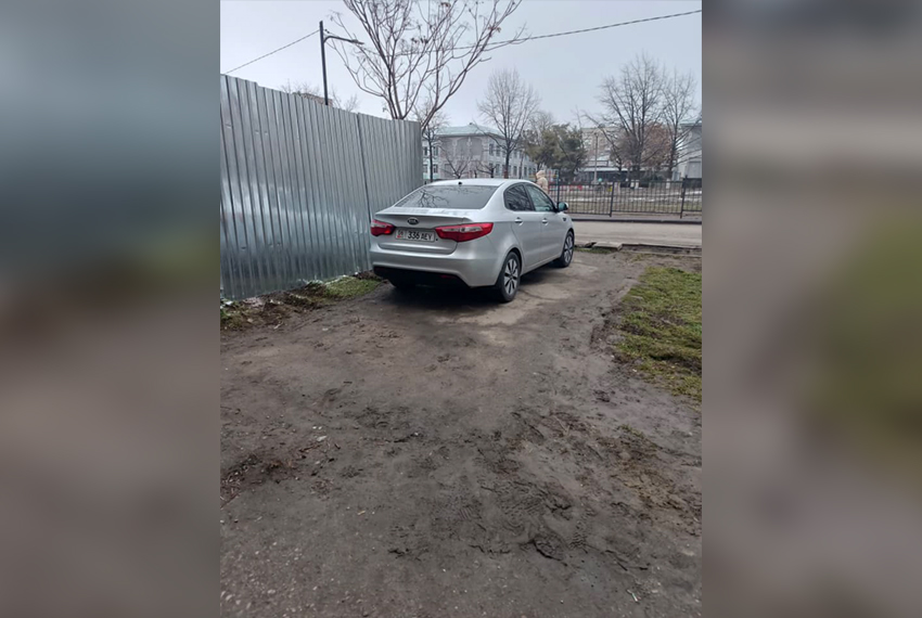 Пересечение улиц Кийизбаевой и Армейской. Машину оставили на газоне.